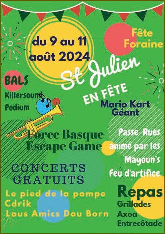 18h : Course de brouettes - en duo, en famille, inscription à partir de 17h - déguisement et décoration bienvenues (1 prix au plus rapide) - renseignements : comitedesfetes.stjulien40@gmail.com