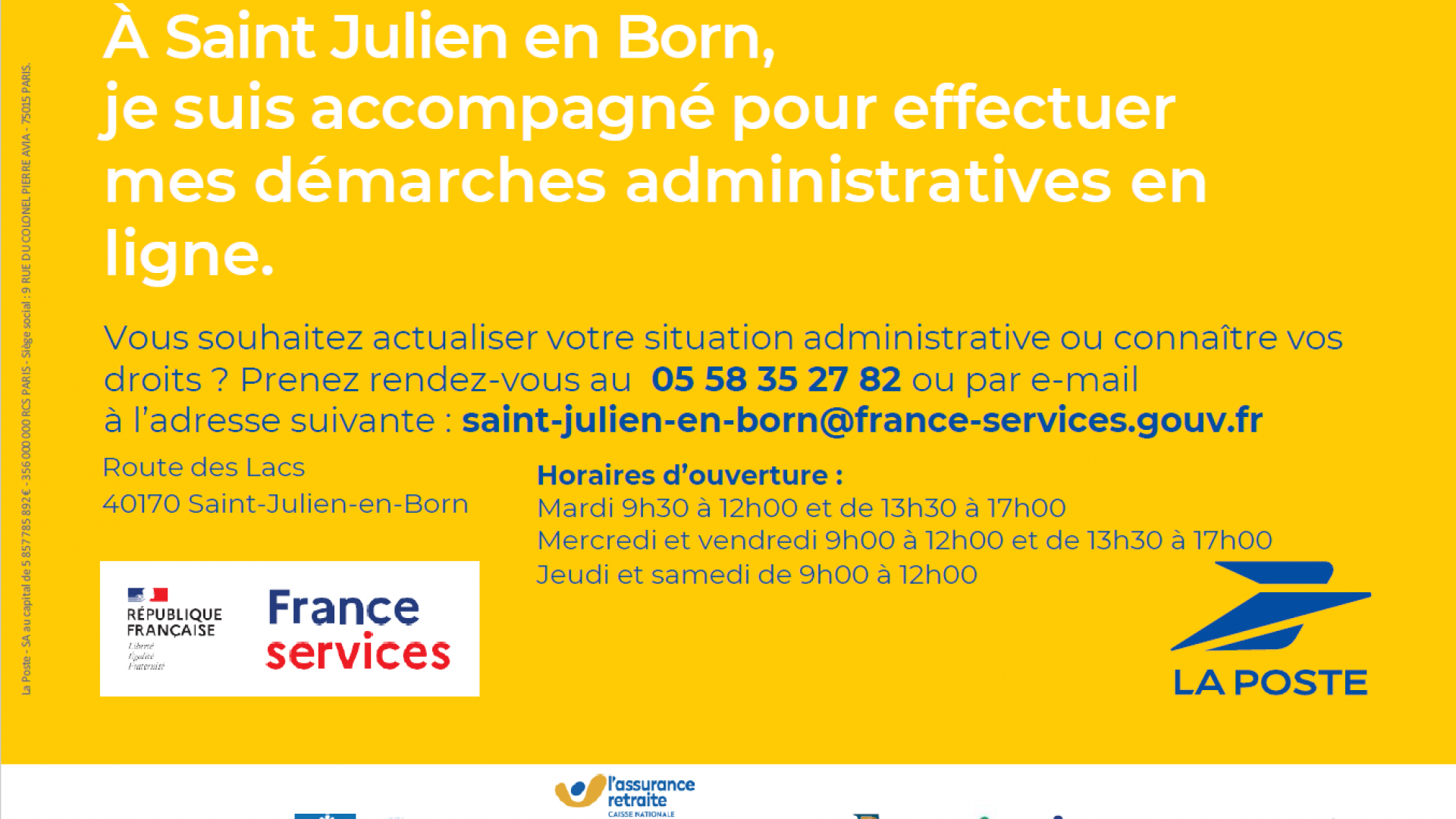 FRANCE SERVICES LA POSTE - route des Lacs - 40170 Saint Julien en Born
